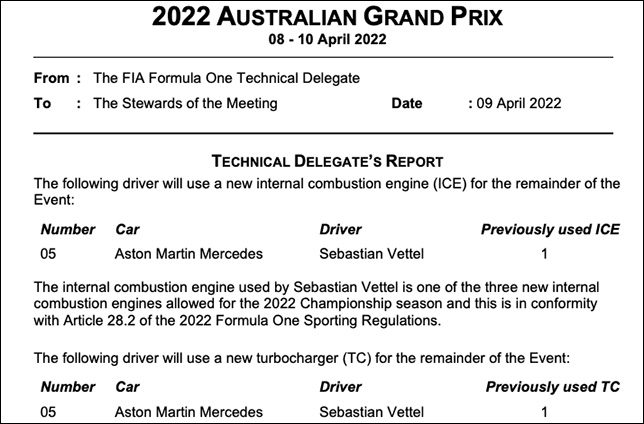 Утром в субботу в FIA подтвердили замену силовой установки на машине Себастьяна Феттеля после возникших накануне проблем.