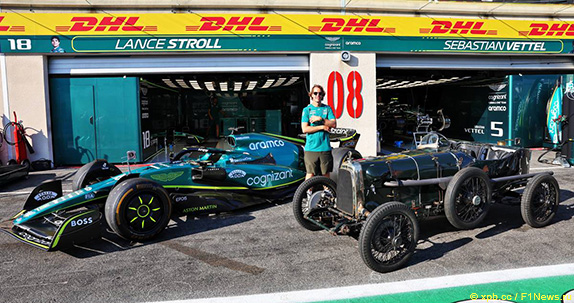 В этот уик-энд команда Aston Martin отмечает 100-летие первого участия автомобилей этой марки в Гран При Франции, и в честь знаменательного события Себастьян Феттель прокатился по трассе в Ле-Кастелле на том самом древнем TT1 образца 1922 года.