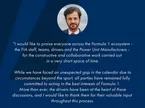 В третьей тренировке придётся быстро приспосабливаться, поскольку вторая тренировка в большей степени была выставочной сессией, чем продолжением первой. Однако вторые свободные заезды всё равно получились полезными, поскольку мы на будущее собрали информацию о шинах – это должно помочь в движении вперёд.