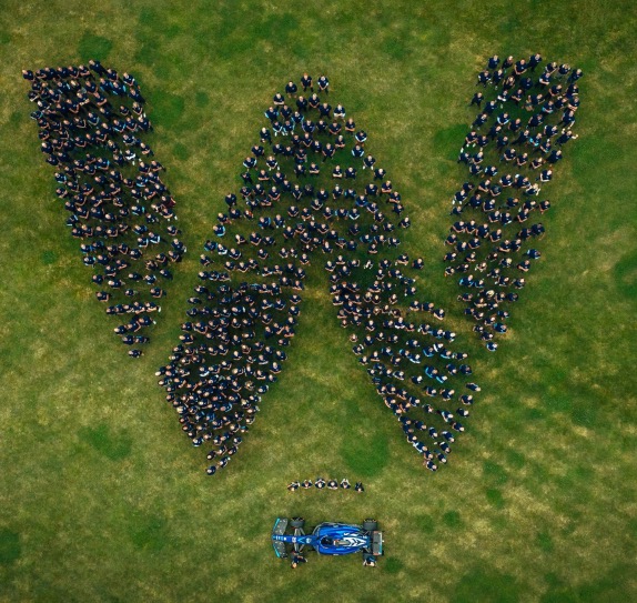 Весь коллектив команды собрался на лужайке, на которую выкатили FW45, машину этого года, и выстроился в виде огромной буквы W.