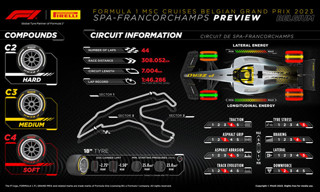 Марио Изола: «После нескольких дней отдыха предстоит ещё один гоночный уик-энд Формулы 1 – последний перед летним перерывом. Гран При Бельгии – один из самых престижных этапов в календаре, проходящий на трассе, на которой гонщики, машины и шины подвергаются настоящим испытаниям. Мы привезём такую же линейку составов, что и в прошлом году – С2, С3 и С4. Такой выбор открывает большой простор для вариантов стратегии, если не будет дождя.