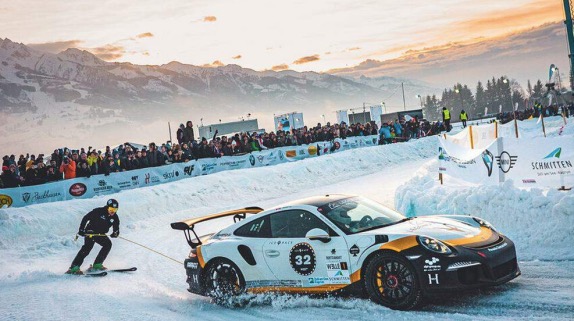 Но сейчас он предпочёл соревнования иного рода, ради которых отправился в австрийские Альпы в местечко Целль-ам-Зее, где на территории местного аэродрома проходили ледовые гонки.