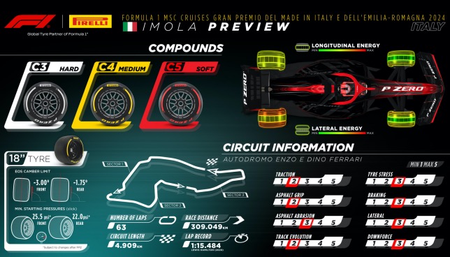 В этот уик-энд на автодроме имени Энцо и Дино Феррари этап чемпионата мира пройдёт уже в 31 раз, и итальянские шинники приготовили для него резину трёх самых мягких составов: C3 будет в роли Hard, С4 – Medium, C5 – Soft.