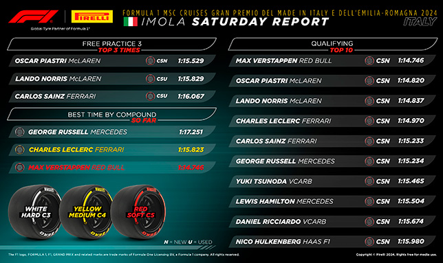 Марио Изола, Pirelli: «Квалификация прошла в плотной борьбе с почти равными результатами команд, но Макс Ферстаппен вновь оказался первым. Учитывая очень небольшую разницу в результатах между Red Bull, McLaren и Ferrari, завтрашняя гонка может оказаться не менее напряжённой.