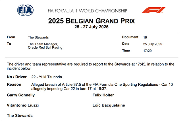 Кроме того, Расселл и Цунода должны будут объяснить слишком медленное движение по трассе в той же сессии.