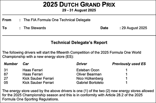 Перед началом первой пятничной тренировки в FIA подтвердили замену элементов силовой установки на четырёх машинах. Оба пилота Haas F1 и оба пилота Sauber получили новые накопители энергии – вторые из двух разрешённых на сезон.