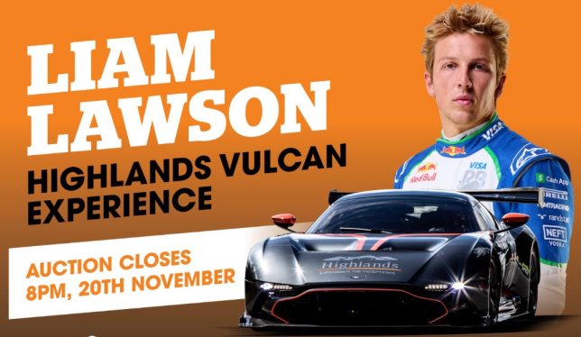 Лиам Лоусон примет участие в благотворительных заездах за рулём суперкаров Lamborghini Huracan и Aston Martin Vulcan.