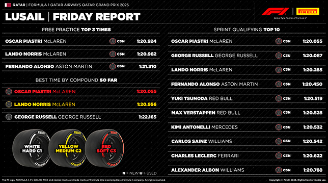 В единственной тренировке команды освоились на трассе, используя шины Hard, оставив один комплект для гонки в воскресенье, а затем завершили сессию на Soft. Разница между Soft и Medium была хорошо заметна в квалификации к спринту, где она составила шесть-семь десятых.