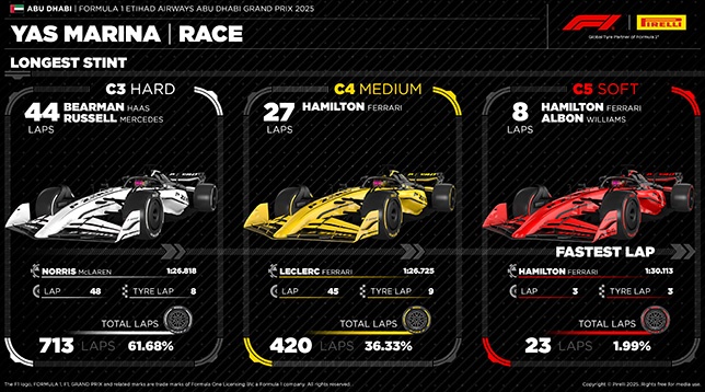 Среди гонщиков, выбравших альтернативную стратегию, выделяется новый чемпион Ландо Норрис. Он выбрал стратегию с двумя пит-стопами, вероятно, под влиянием дополнительного пит-стопа Шарля Леклера из Ferrari, использовав два свежих комплекта шин Hard, которые в McLaren сохранили в ходе подготовки к гонке.