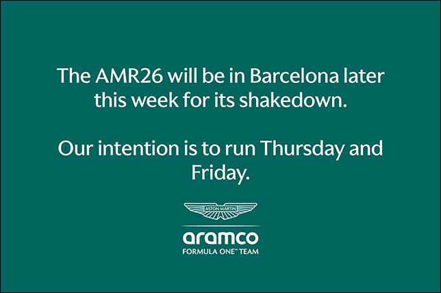 На закрытых тестах в Барселоне команды могут отработать любые три дня из пяти, но в Aston Martin отработают только два.