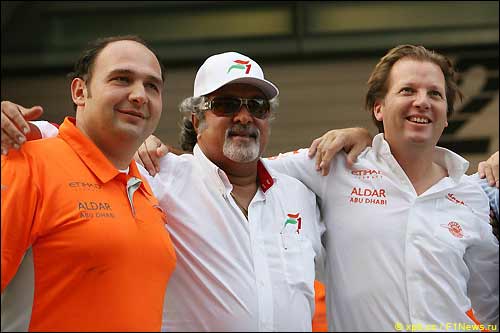На фото: (слева направо) глава команды Колин Коллес и ее совладельцы, Виджей Малья и Михил Мол