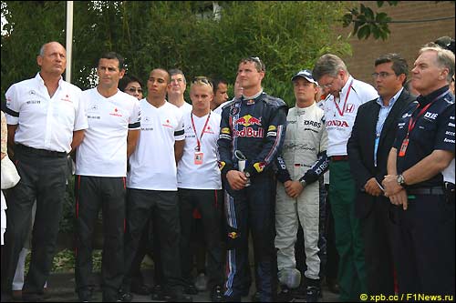 В четверг Фернандо Алонсо выразил надежду, что к минуте молчания присоединятся другие пилоты, и сегодня, после окончания первой сессии свободных заездов, в полдень по местному времени, гонщики, руководство автодрома и команд чемпионата, провели три минуты в тишине.