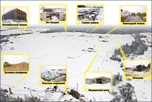 В зимний период на автодроме велись активные работы по возведению зданий и сооружений. К концу первого квартала 2011 года закончены работы по строительству железобетонной конструкции медицинского центра, заведен тепловой контур для подготовительных работ по отделке помещения.