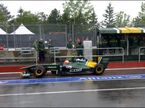 Однако позже судьи несколько омрачили радость подопечных Колина Коллеса. Они усмотрели в действиях Картикеяна нарушение правил - индус провел один из обгонов, срезав финальную "эску". Проезд через боксы, положенный за такой проступок, был заменен 20-секундным штрафом, который отправил гонщика на 17-е место в итоговом протоколе.