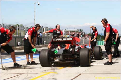 Венгерский Хунгароринг относится к тем трассам, где на первый план выходят качества шасси - особенно важен в непрерывной череде поворотов высокий уровень прижимной силы. Тем, чьи машины не столь хороши, угнаться за лидерами здесь особенно сложно. По ходу нынешнего уик-энда, начиная со второй пятничной тренировки, никому из гонщиков Marussia Virgin Racing и HRT не удавалось уложиться в 107% от лучшего результата.